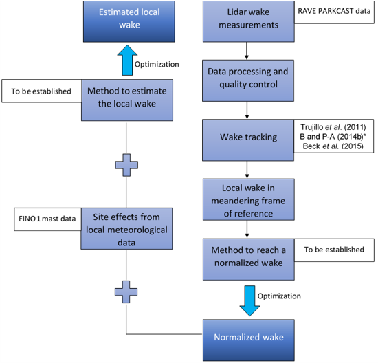 The study of wakes inside wind farms are extremely relevant to predict the power output, optimize the wind farm layout, or to improve the design of wind turbines. The increasing reliability of LiDARs allows the remote measurement of wakes with high spatial and temporal resolution. The main goal of this PhD is to apply averaging techniques to the measured wake in order to remove site effects (such as atmospheric stability), aiming to reach a site-independent “normalized wake”. Another objective is to apply the normalized wake on a specific selected case regarding atmospheric stability and, for instance, into an industrial wind-farm model.